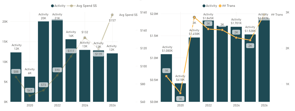 However, despite this 2% drop in volume, the average price is up 24%. That’s almost $35 more per passenger purchased, across the board. Know what that means? When average unit price goes up, so does revenue – so in 2026, we’re clocking 21% more year-to-date sales over 2025. Not bad!